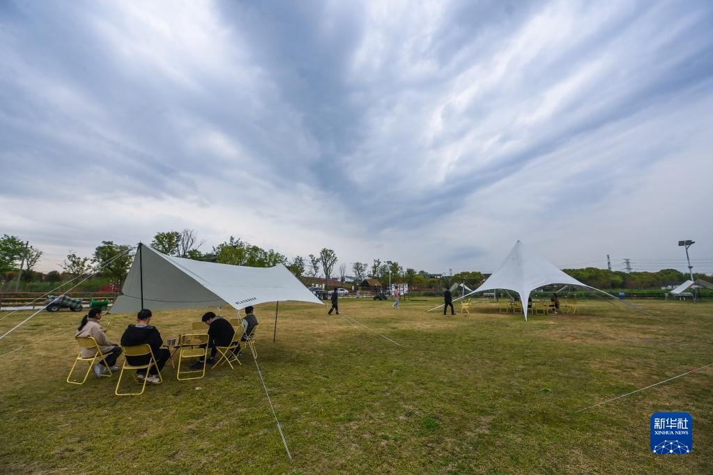 4月3日,游客在嘉興市秀洲區王店鎮南梅村的南梅里營(yíng)地休閑。