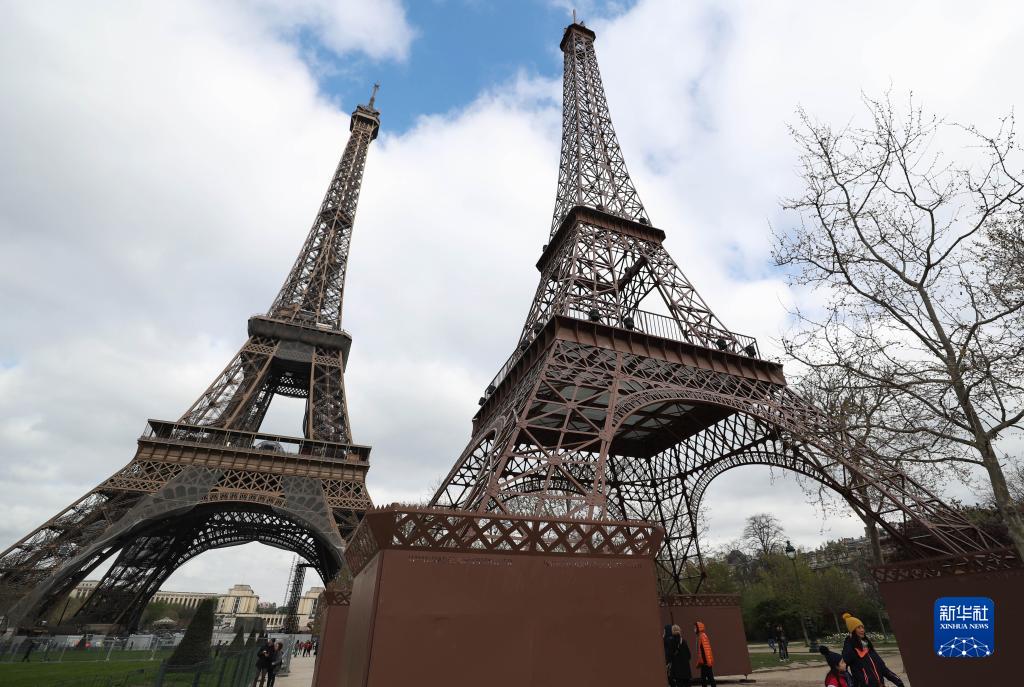 這是4月3日在法國巴黎拍攝的埃菲爾鐵塔(左)和“小埃菲爾鐵塔”。