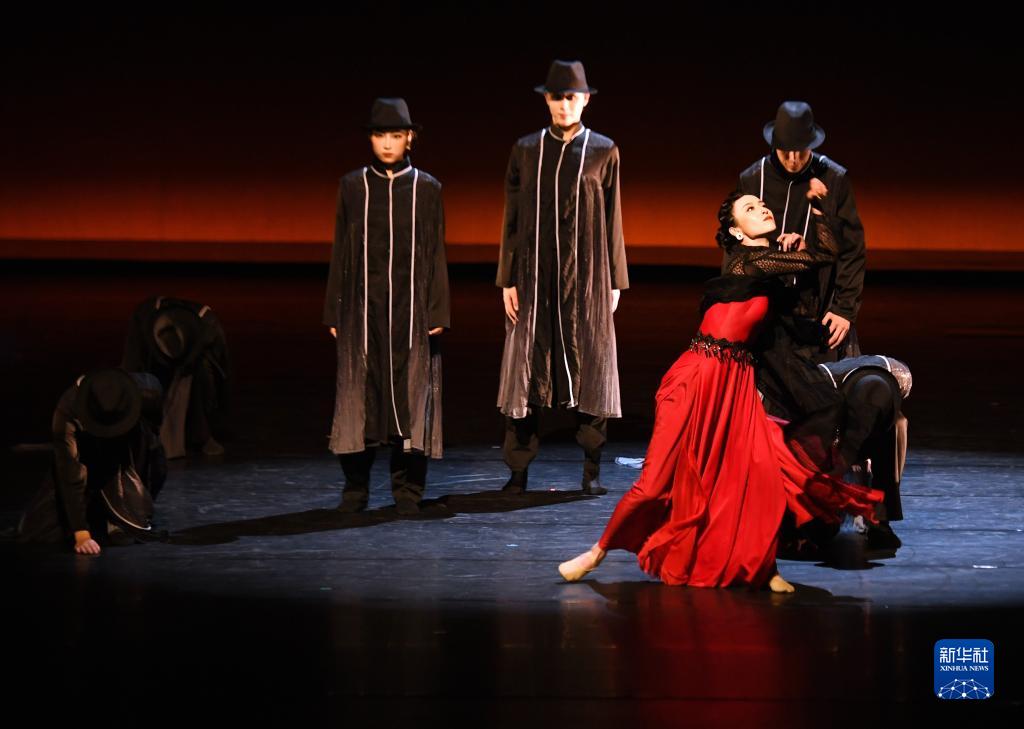 4月3日,演員在舞劇《藍色裙擺》中表演。