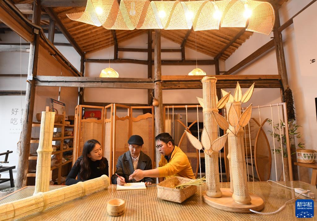 4月3日,姜鵬(中)和兩名團隊成員在繪制新產(chǎn)品設計圖。新華社記者 翁忻旸 攝