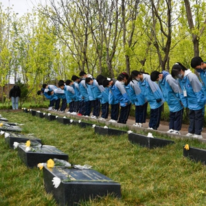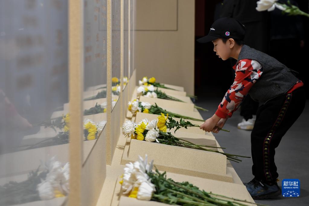 4月4日,學(xué)生在長(cháng)春偽滿(mǎn)皇宮博物院東北淪陷史陳列館向抗日英烈敬獻鮮花。