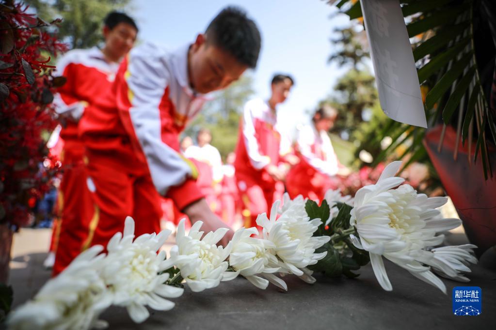 4月4日,學(xué)生在貴州省畢節市烈士陵園敬獻鮮花。