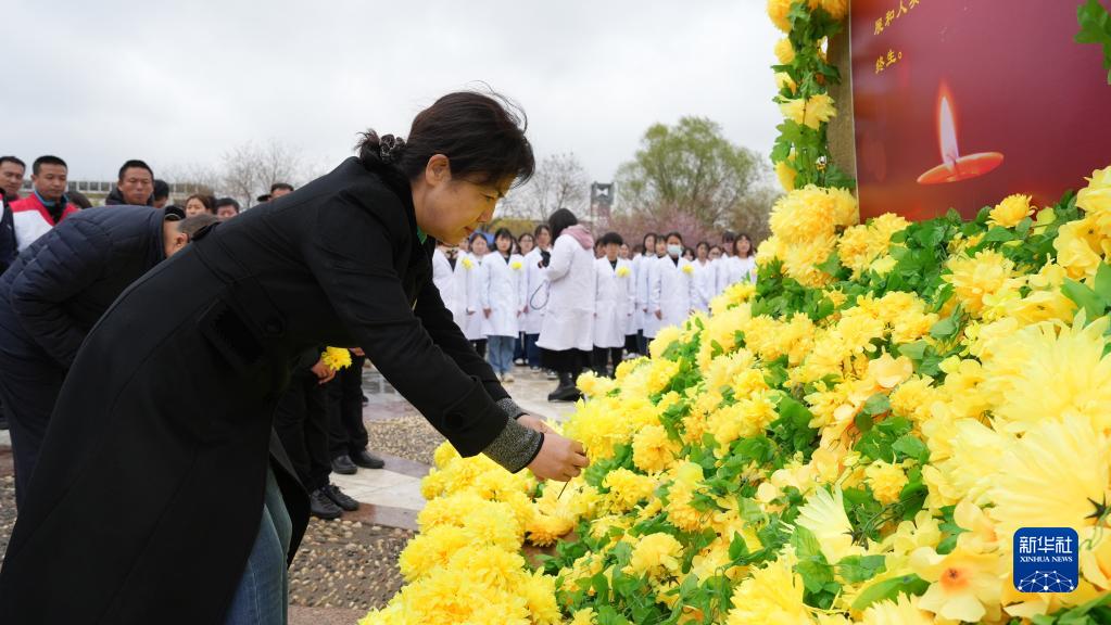 4月4日,寧夏醫科大學(xué)師生向遺體捐獻者獻花致敬。