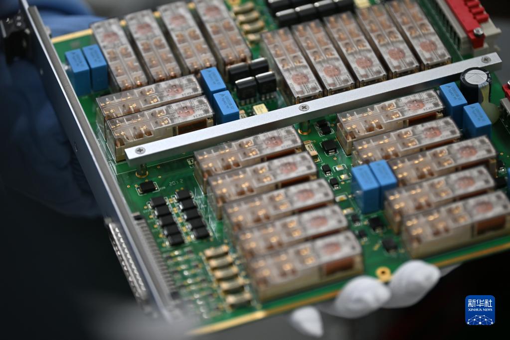4月3日拍攝的由天津武清交控技術(shù)裝備有限公司生產(chǎn)的電路板。