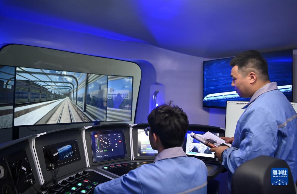 4月3日,員工在天津武清交控技術(shù)裝備有限公司的模擬駕駛艙內工作。
