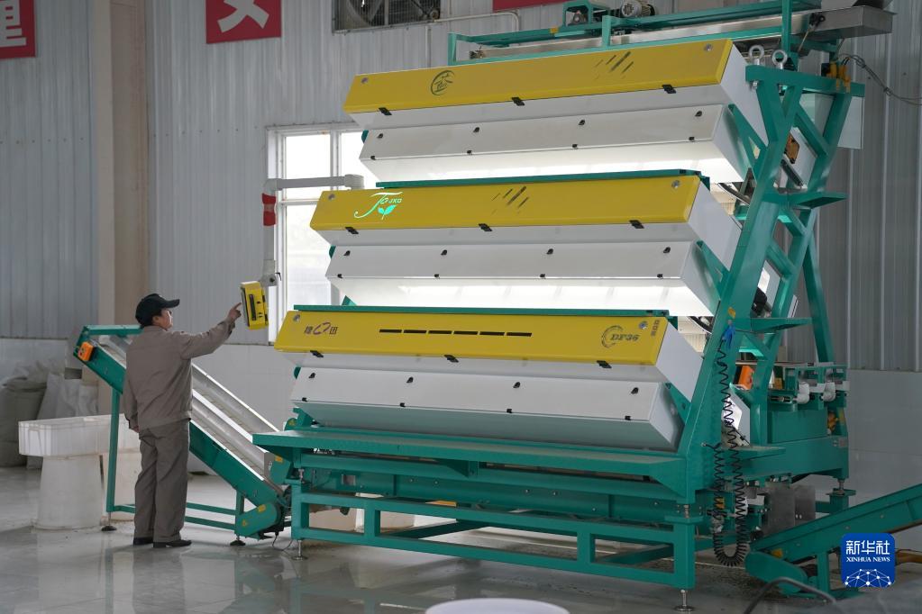 4月3日,在西鄉縣一家茶企生產(chǎn)車(chē)間,工人在操作色選機分揀茶葉。