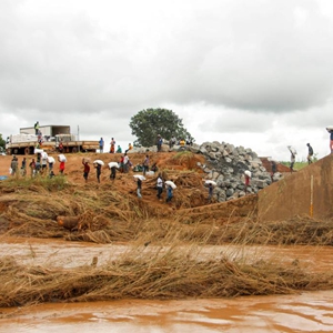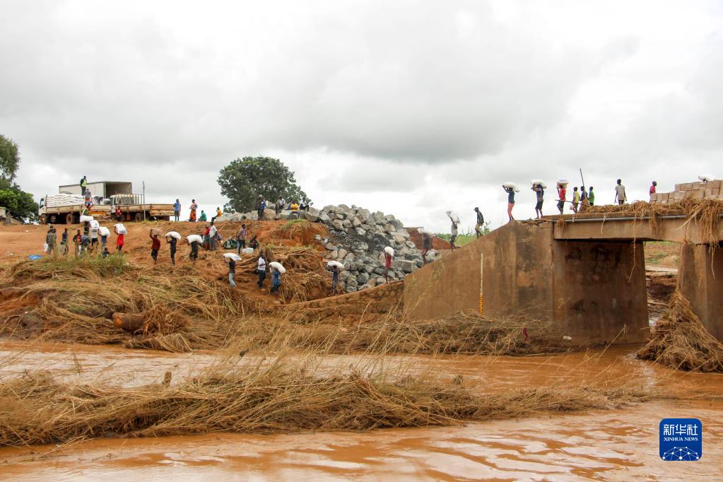 3月31日,工人在馬拉維姆蘭杰一處受損的橋梁上搬運物品。