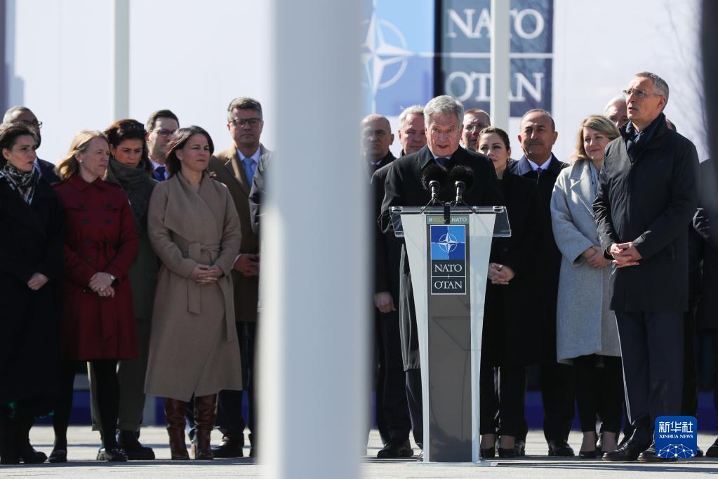 北大西洋公約組織(北約)4日下午在其位于布魯塞爾的總部舉行芬蘭加入北約儀式。芬蘭成為北約第31個(gè)成員國。新華社記者鄭煥松攝