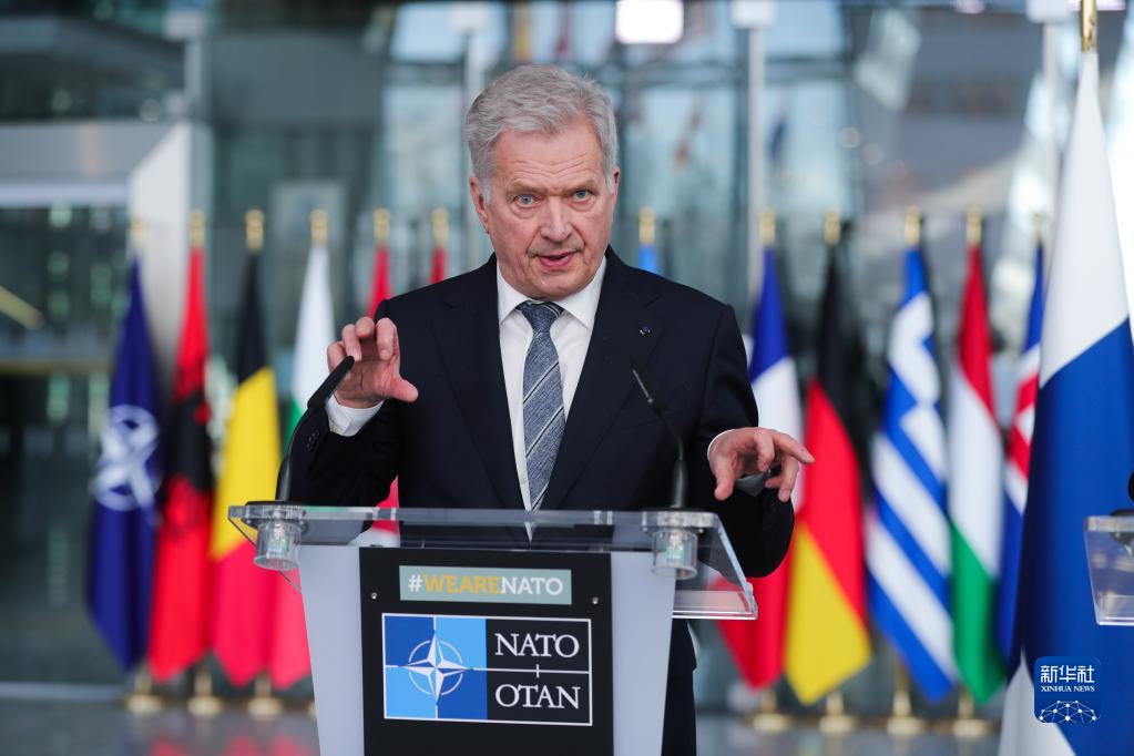 4月4日,在比利時(shí)布魯塞爾的北約總部,芬蘭總統尼尼斯托對媒體發(fā)言。