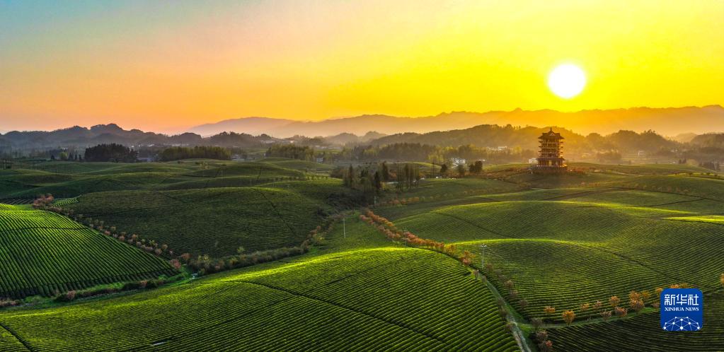 4月4日拍攝的遵義市湄潭縣永興鎮萬(wàn)畝茶海(無(wú)人機照片)。