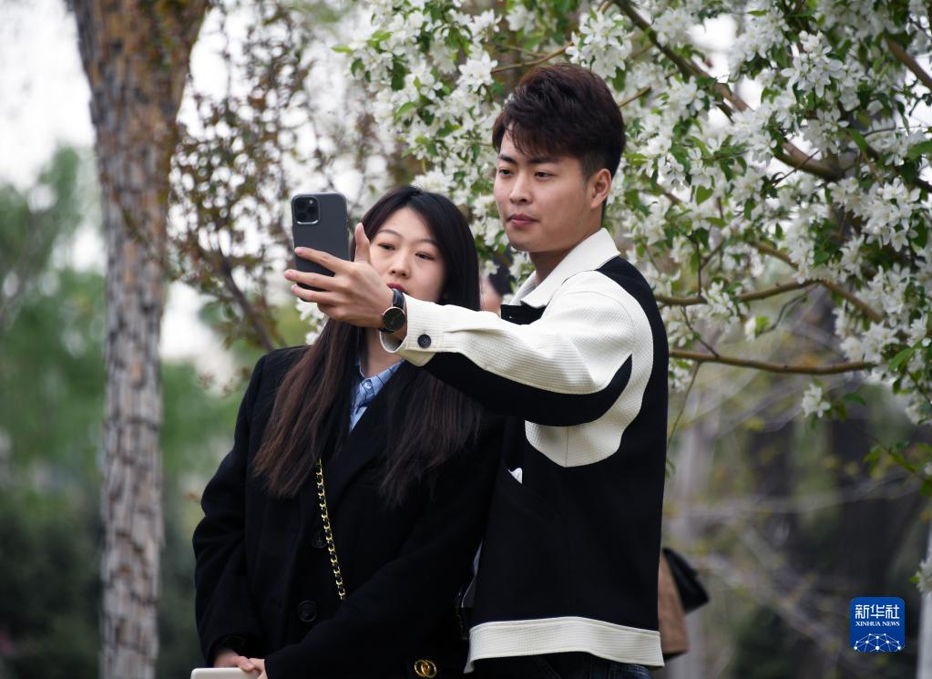 當日是清明節,不少游客來(lái)到北京世界花卉大觀(guān)園踏青游玩,感受春天的美好。