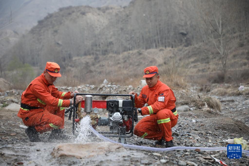 4月4日,連城駐防分隊的指戰員們在駐地周?chē)M(jìn)行水泵操作訓練。