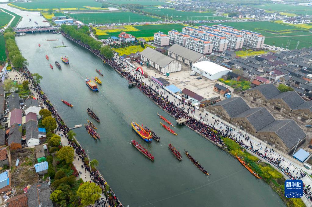 4月5日,各式船只在茅山西大河參加茅山會(huì )船(無(wú)人機照片)。