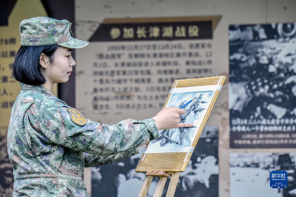 4月4日,第73集團軍某旅組織官兵開(kāi)展“寸紙追思”活動(dòng),通過(guò)素描革命先輩雕塑和畫(huà)像的形式感悟英烈精神。這是一名女兵在旅史長(cháng)廊畫(huà)素描。