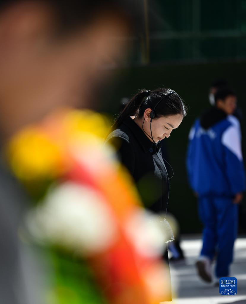 在拉薩烈士陵園,索朗拉姆主持默哀儀式(4月4日攝)。