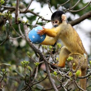 4月5日,在英國倫敦動(dòng)物園,一只松鼠猴享用“彩蛋大餐”。