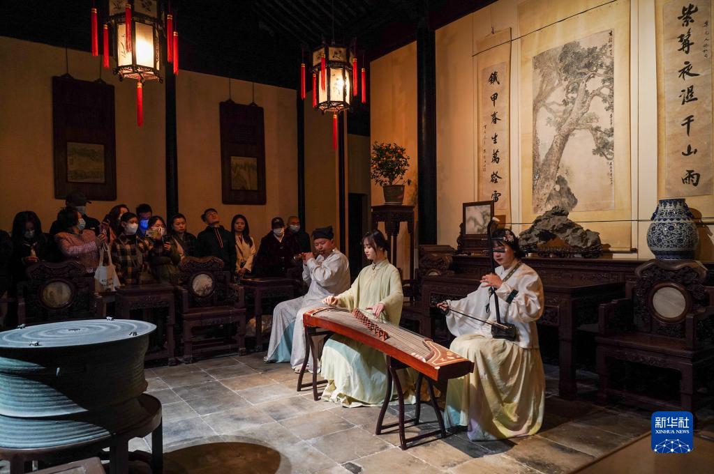 近年來(lái),江蘇省蘇州市網(wǎng)師園通過(guò)數字化展示手段,結合江南絲竹演奏、昆曲、評彈等傳統曲藝表演,不斷探索園林夜游發(fā)展新模式,將古典美學(xué)融入現代生活,為游客展示夜間的園林魅力。