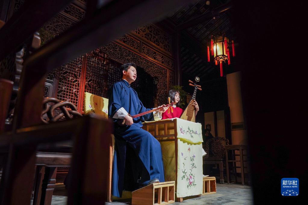 4月5日,演員在蘇州網(wǎng)師園內表演評彈。