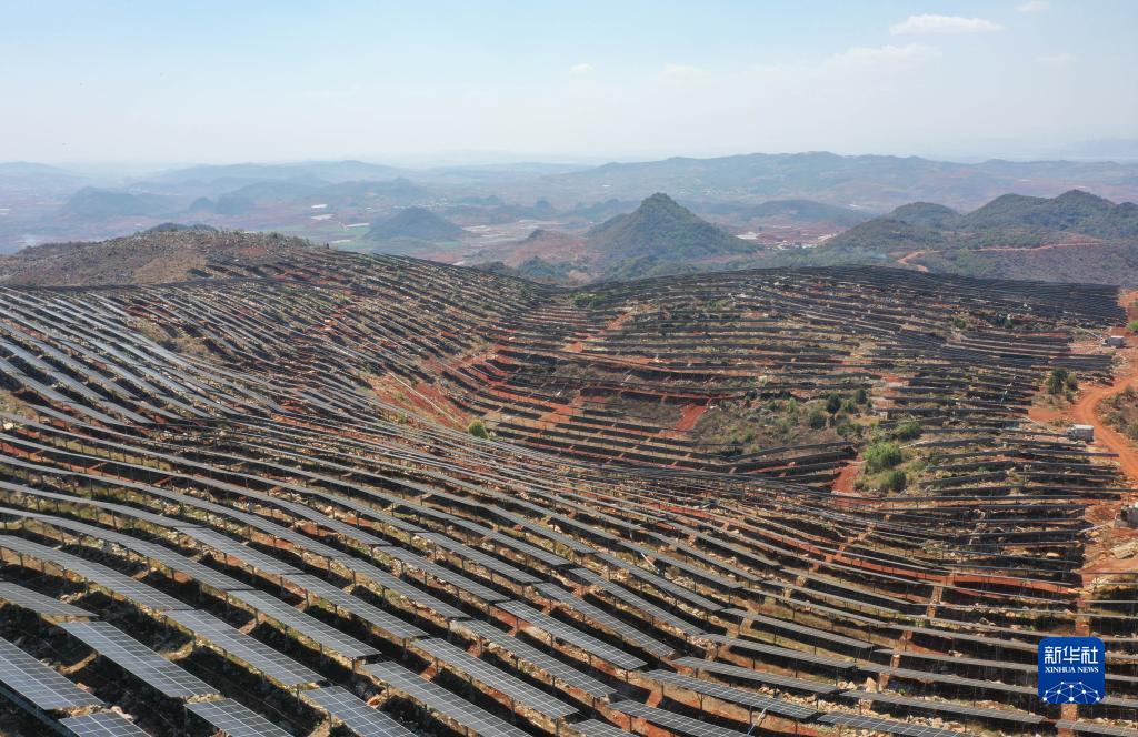 4月6日在硯山縣拍攝的平遠小石巖光伏電站(無(wú)人機照片)。
