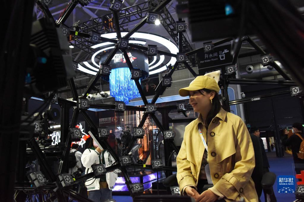 4月6日,參觀(guān)者在展會(huì )上體驗數字微表情捕捉技術(shù)。