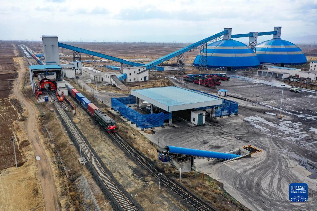 4月6日,首列中歐班列駛出河北張家口萬(wàn)全西站(無(wú)人機照片)。