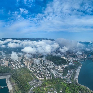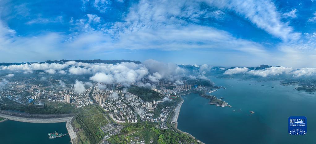 一場(chǎng)春雨過(guò)后,長(cháng)江三峽上空云霧繚繞,如水墨畫(huà)卷,美不勝收。