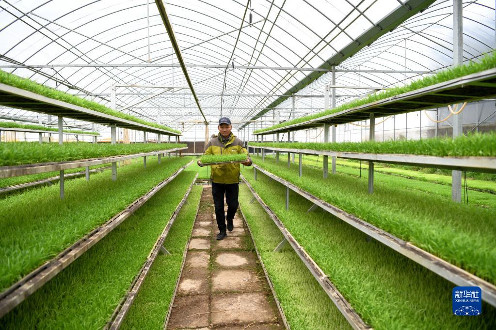 4月6日,在江西省南昌縣蔣巷鎮大田農社,育秧大棚內工作人員將長(cháng)勢較好的秧苗移至秧田。