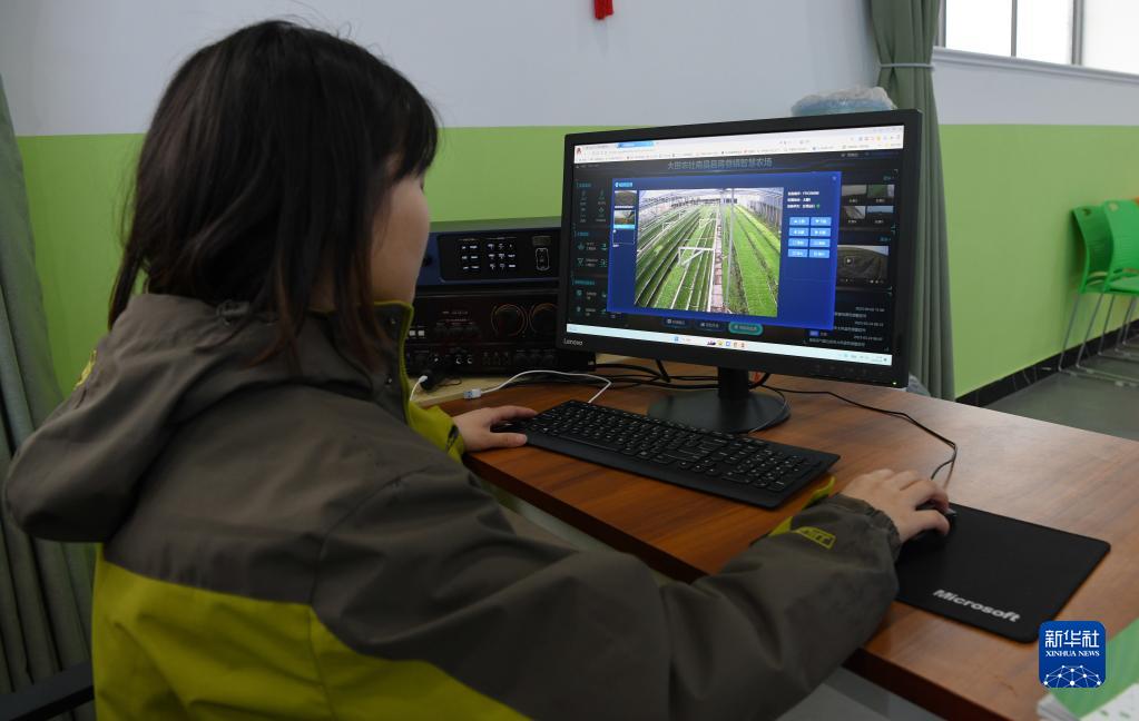 4月6日,在江西省南昌縣蔣巷鎮大田農社,智慧農業(yè)平臺工作人員通過(guò)系統實(shí)時(shí)查看育秧大棚情況。