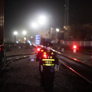 在阿拉山口,記者見(jiàn)到崔洪武的時(shí)候已是深夜。他穿戴整齊,站在阿拉山口出入境邊防檢查站寬軌執勤點(diǎn)的值班室里等候列車(chē)到達的指令。凌晨時(shí)分,幾列來(lái)自哈薩克斯坦的貨運列車(chē)抵達。崔洪武帶領(lǐng)兩位同事在寒風(fēng)中出發(fā),來(lái)到列車(chē)的最后一節車(chē)廂開(kāi)始檢查工作,將列車(chē)的每一個(gè)細節都精準過(guò)濾了一遍。