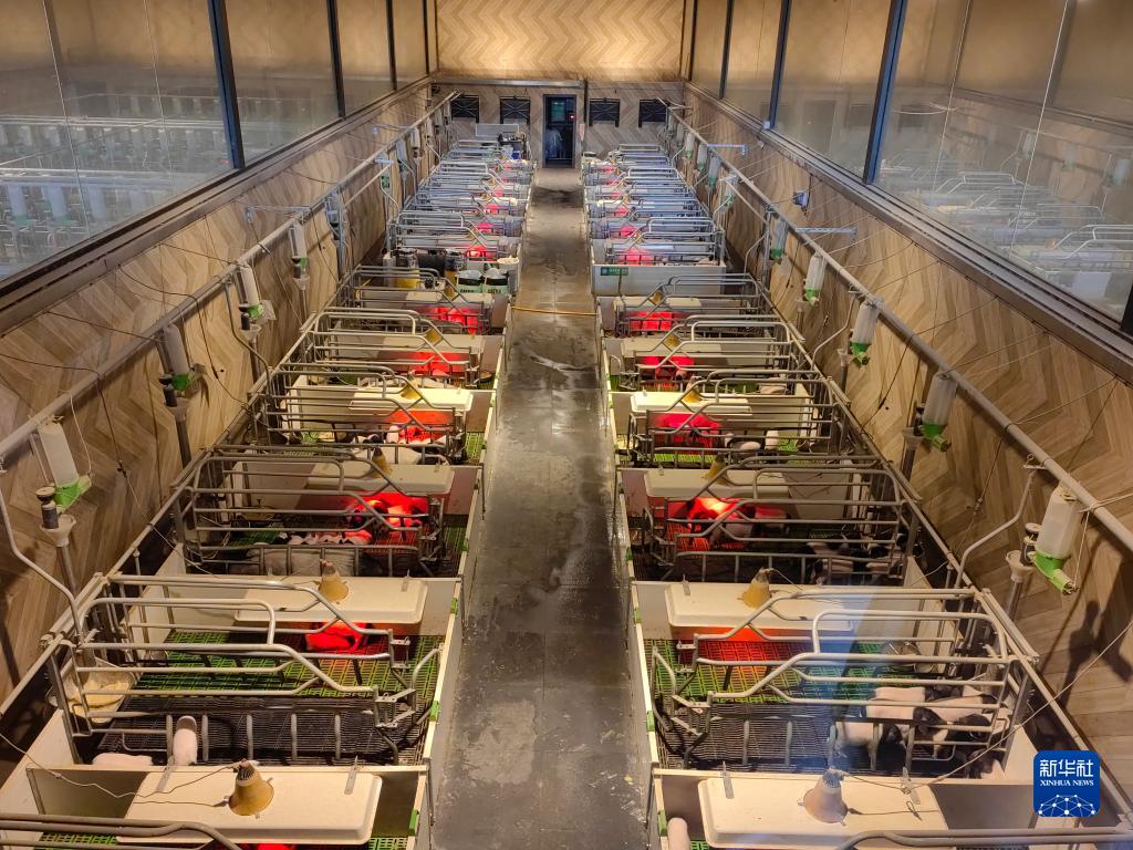 4月7日,在位于浙江省金華市婺城區長(cháng)山鄉的熊貓豬豬“未來(lái)牧場(chǎng)”,豬舍內部配備先進(jìn)養殖設施,實(shí)時(shí)監控、掌握豬只生長(cháng)情況。