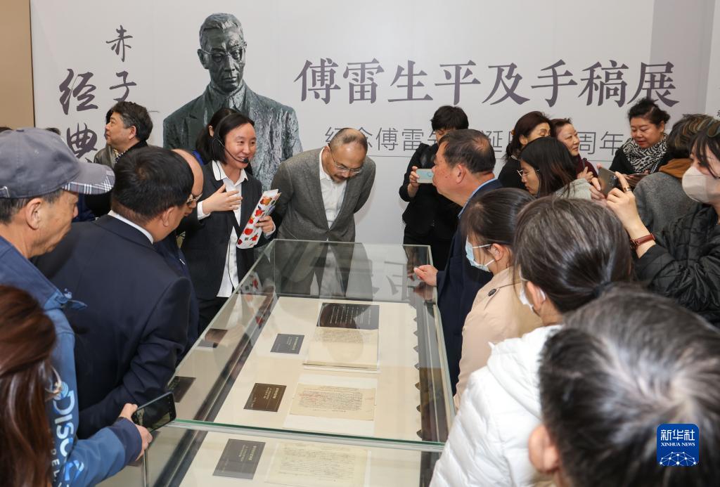 4月7日,參觀(guān)者在傅雷生平及手稿展上參觀(guān)。