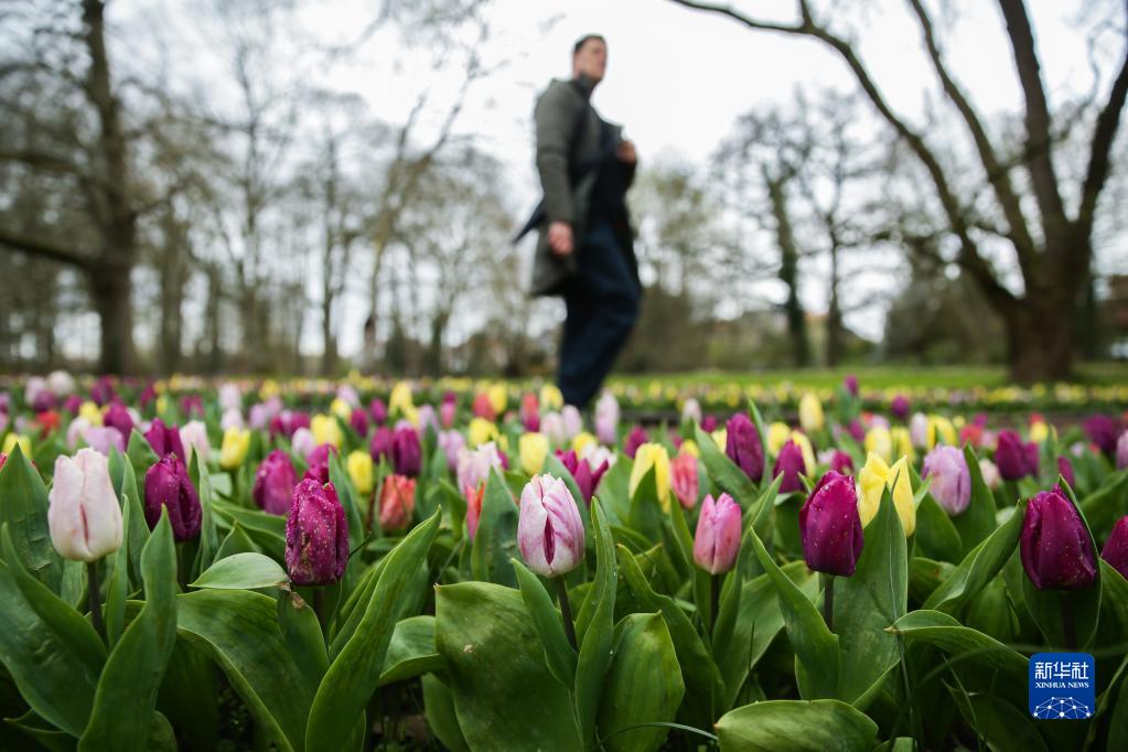4月7日,參觀(guān)者在比利時(shí)首都布魯塞爾以西的拜加登城堡園林觀(guān)看國際花展。