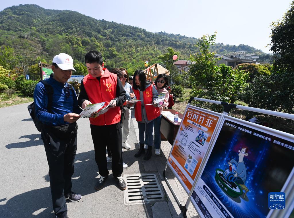 4月8日,諸暨市志愿者在趙家鎮皂溪村發(fā)放“掃黃打非”科普知識宣傳冊。