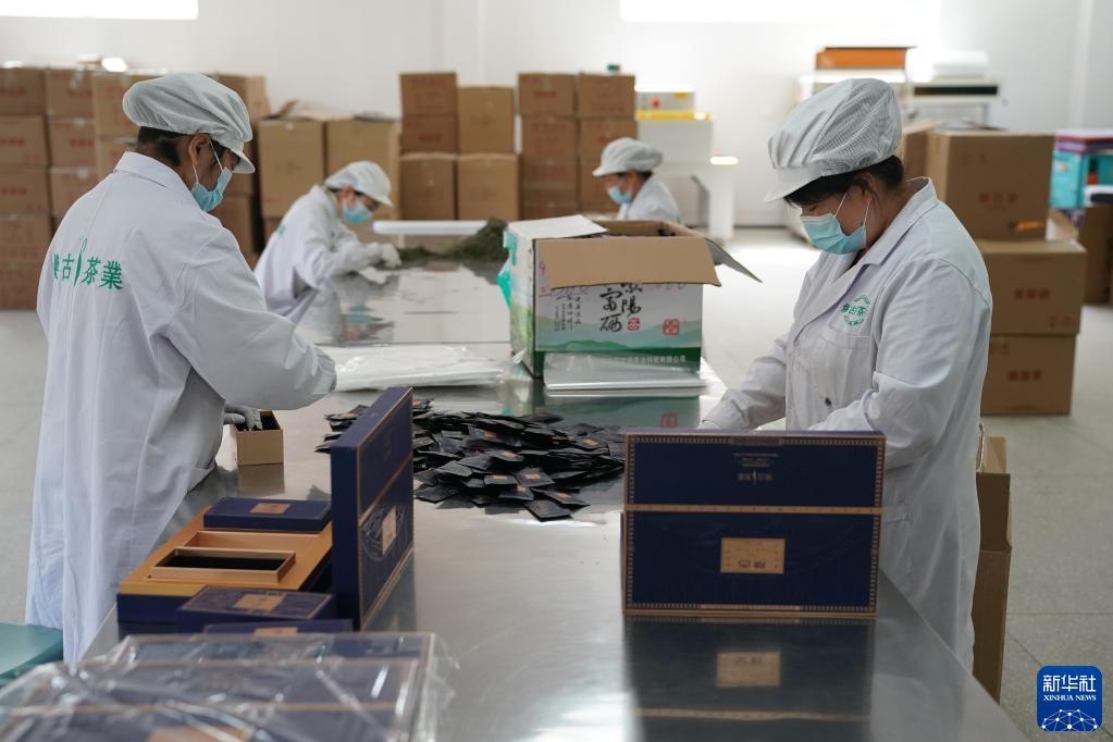 4月6日,工人在安康市紫陽(yáng)縣煥古鎮一家茶企車(chē)間包裝茶產(chǎn)品。