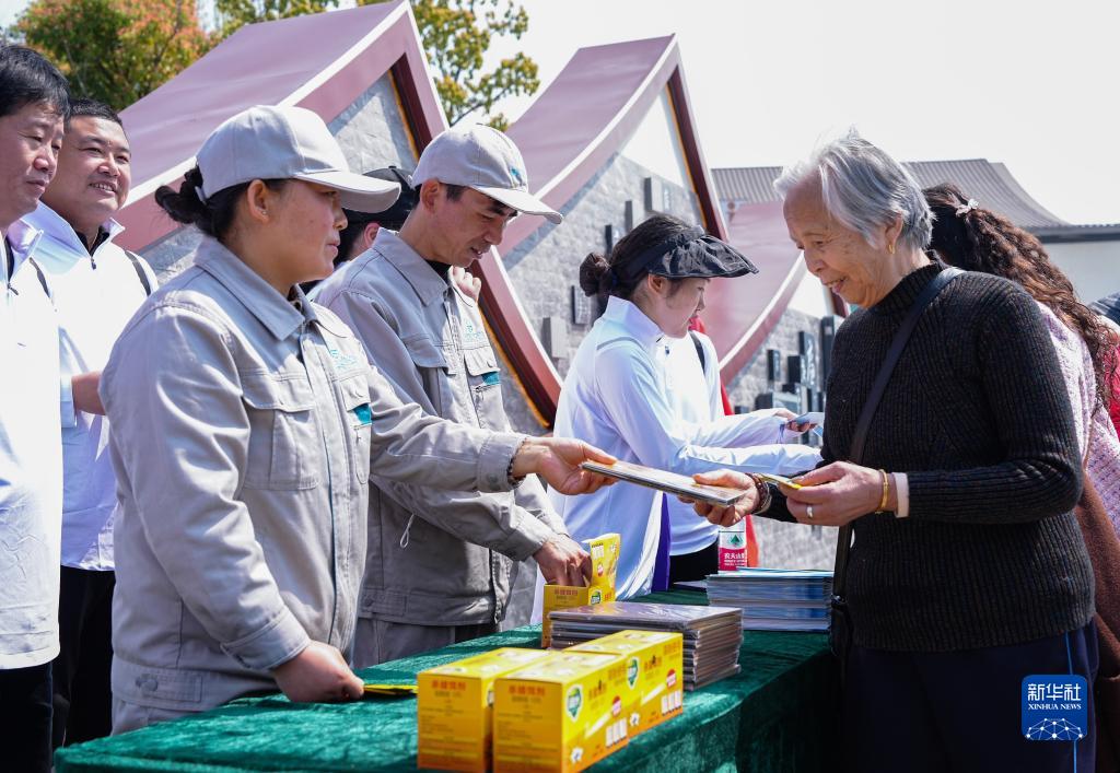 4月8日,在臨安青山湖綠道廣場(chǎng),志愿者向群眾發(fā)放家庭除“四害”藥物以及宣傳資料。