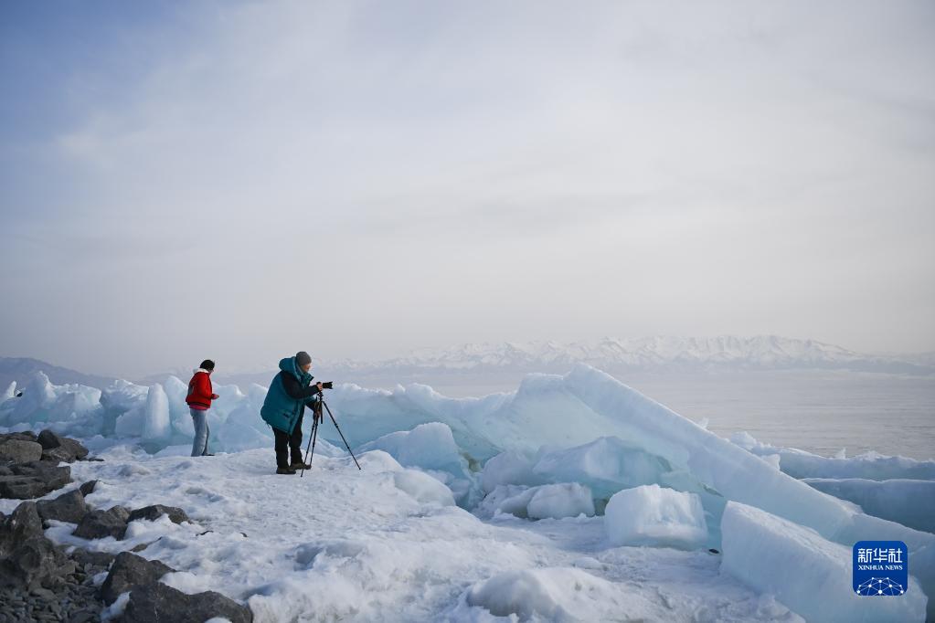 4月,隨著(zhù)氣溫不斷升高,新疆博爾塔拉蒙古自治州的賽里木湖也奏響了春天的序曲。冰封數月的湖面逐漸融化,巨大的冰面在湖水的作用下涌向岸邊,綿延數十公里,蔚為壯觀(guān)。因湖水含有礦物質(zhì),“冰推”期的賽里木湖冰面呈現獨特的淡藍色。雖然不在旅游旺季,每日仍吸引數千名游客前來(lái)打卡。