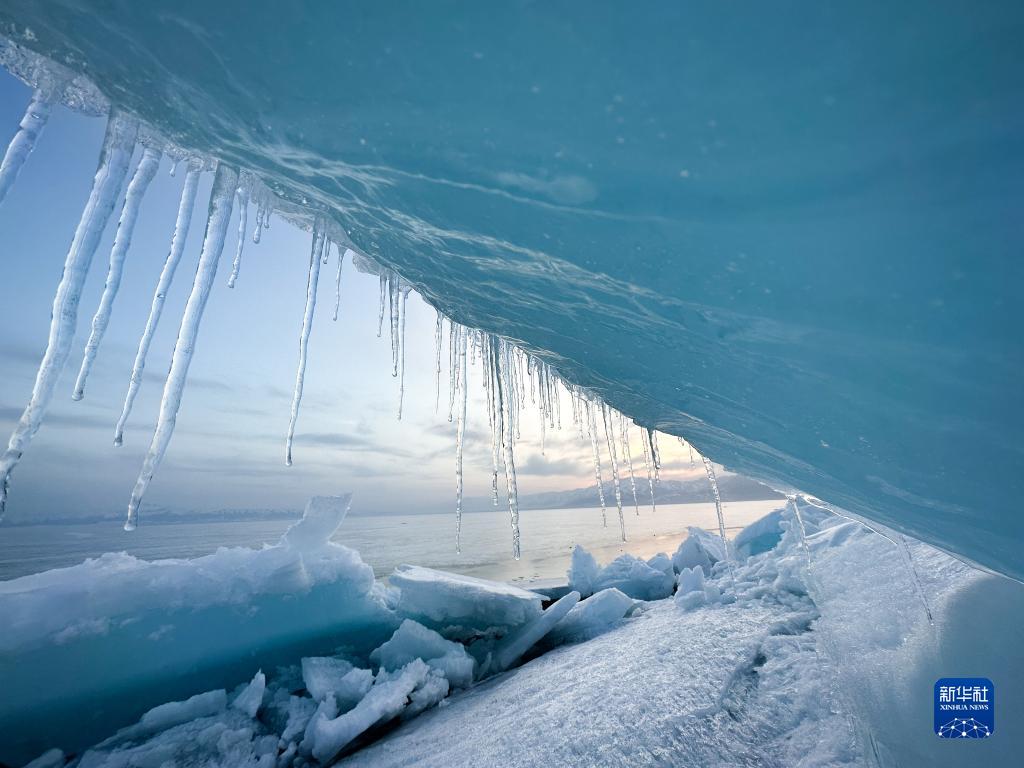 4月,隨著(zhù)氣溫不斷升高,新疆博爾塔拉蒙古自治州的賽里木湖也奏響了春天的序曲。冰封數月的湖面逐漸融化,巨大的冰面在湖水的作用下涌向岸邊,綿延數十公里,蔚為壯觀(guān)。因湖水含有礦物質(zhì),“冰推”期的賽里木湖冰面呈現獨特的淡藍色。雖然不在旅游旺季,每日仍吸引數千名游客前來(lái)打卡。