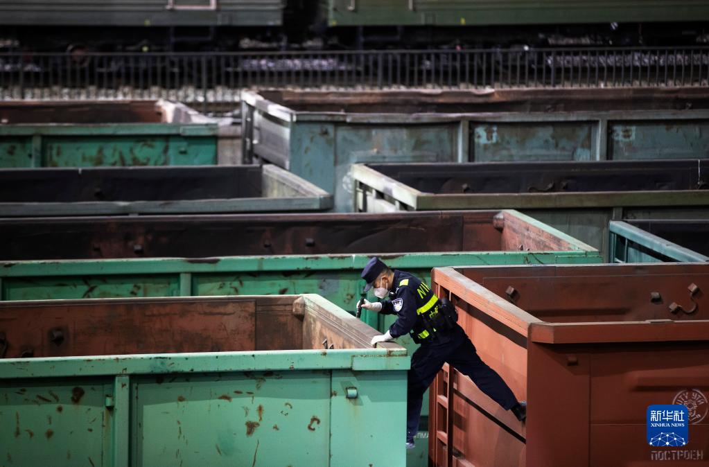 4月4日凌晨,阿拉山口出入境邊防檢查站的崔洪武在進(jìn)行車(chē)體查緝工作。