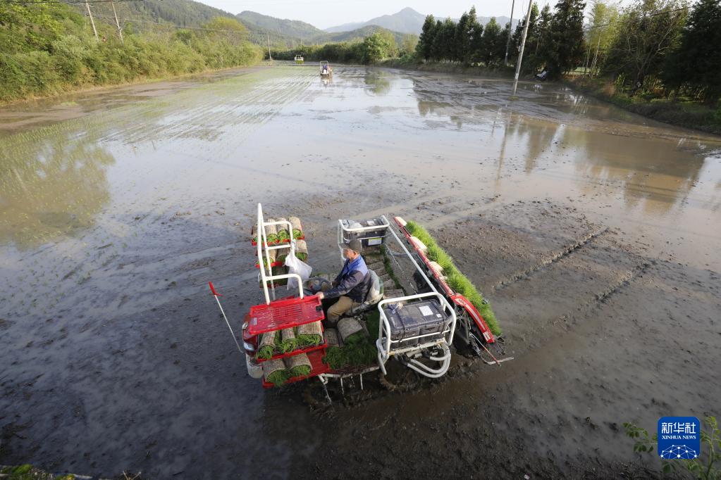 4月7日,插秧機在浦城縣石陂鎮開(kāi)展再生稻插秧作業(yè)。