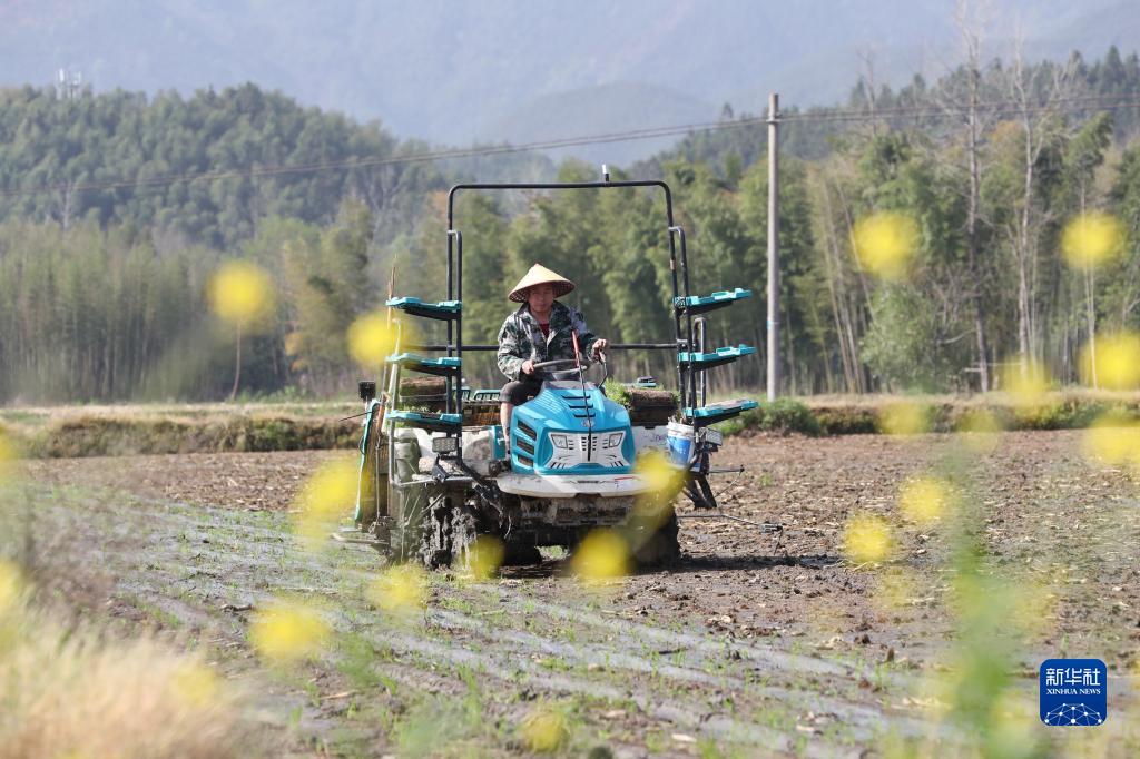 4月7日,在浦城縣臨江鎮萬(wàn)鑫家庭農場(chǎng)高標準農田,農民駕駛插秧機開(kāi)展再生稻插秧作業(yè)。