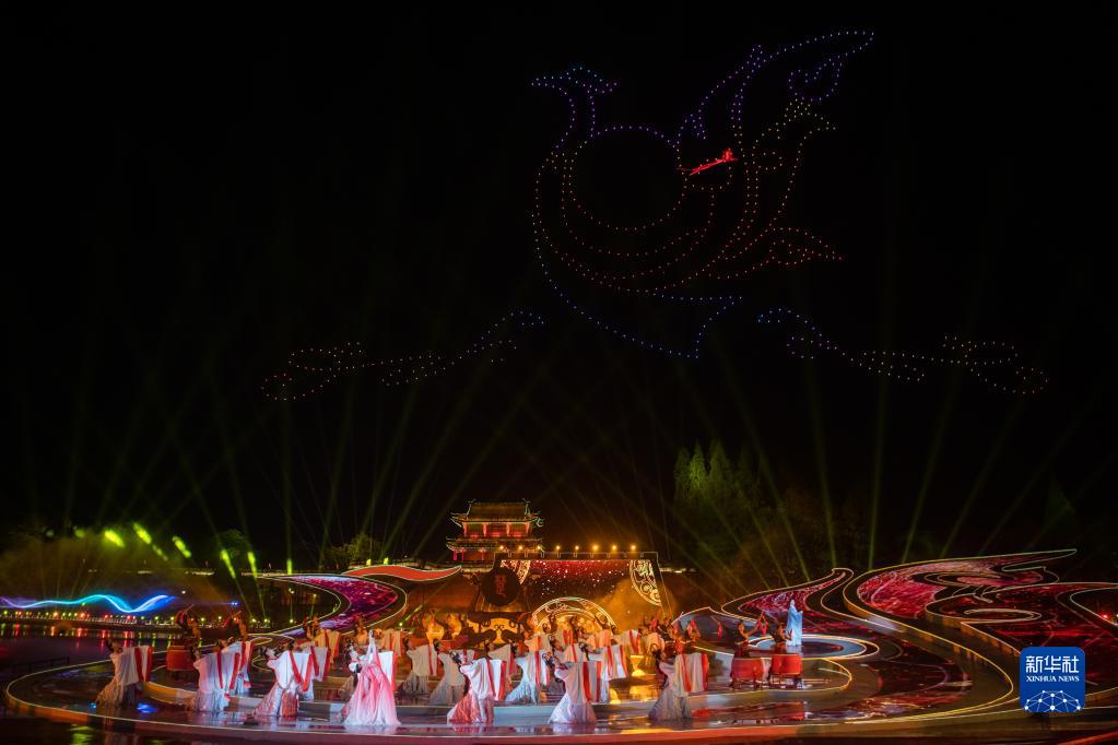 當日,首屆楚文化節在湖北省荊州市古城東門(mén)賓陽(yáng)樓護城河水上舞臺開(kāi)幕。本次楚文化節以“傳承創(chuàng )新 楚韻荊州”為主題,設計了楚史展覽、楚藝大觀(guān)、楚戲匯演、楚肆趕集、楚地尋游5大版塊,及楚王車(chē)馬陣出土文物展、荊楚非遺秀等一系列子活動(dòng),展現楚文化的深厚內涵和時(shí)代魅力。新華社記者 伍志尊 攝