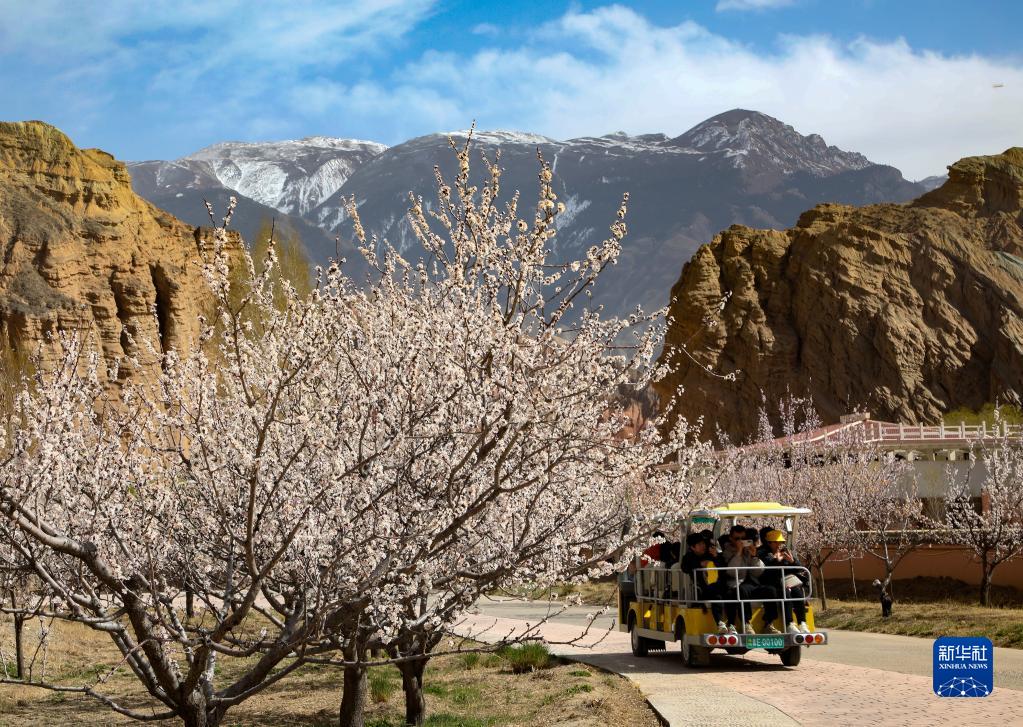 春暖花開(kāi)的季節,位于青海省海南藏族自治州貴德縣的貴德國家地質(zhì)公園迎來(lái)春游的游客,盛開(kāi)的春花與丹霞地貌、雪山構成一幅美麗的高原春色圖。