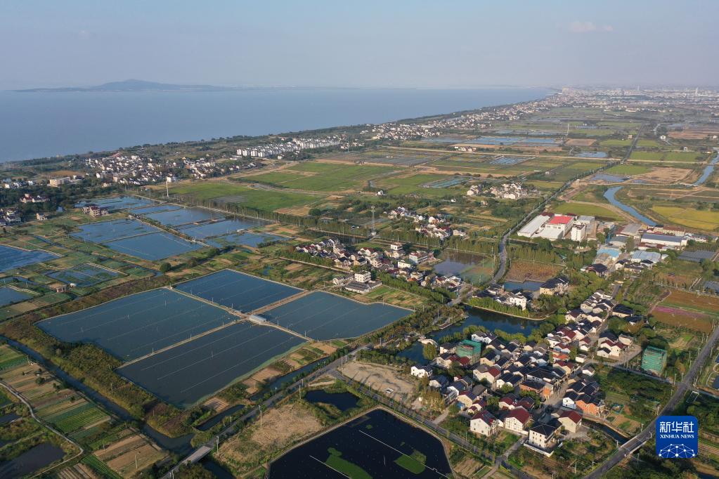 浙江省湖州市吳興高新區毗鄰太湖的村莊(2022年10月13日攝,無(wú)人機照片)。
