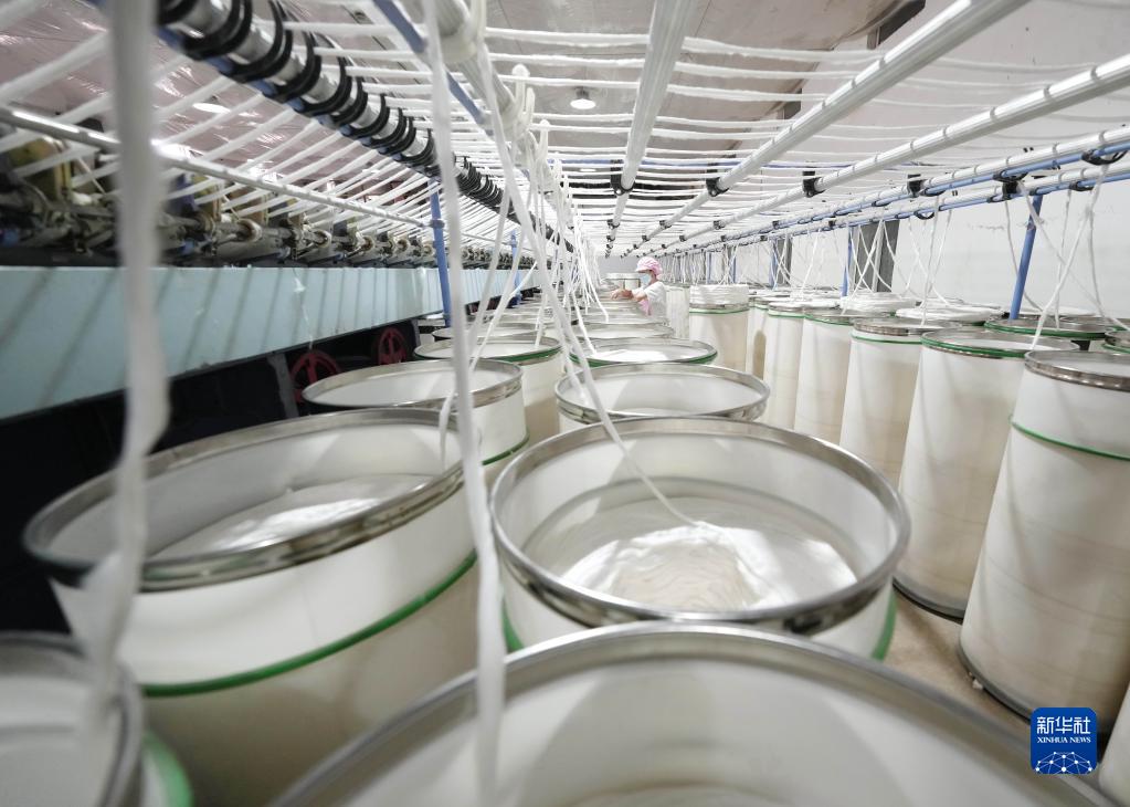 4月9日,工人在河北省青龍滿(mǎn)族自治縣朱杖子鄉朱杖子村一家紡織企業(yè)生產(chǎn)車(chē)間工作。