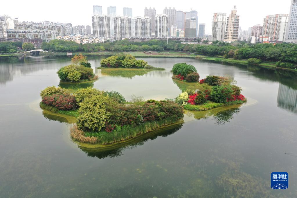 這是南寧市南湖湖心生態(tài)島(4月9日攝,無(wú)人機照片)。