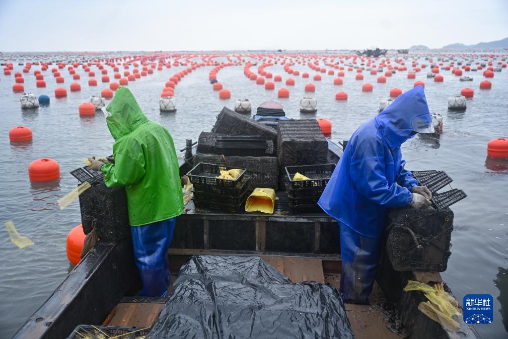 當日,福建省連江縣近600名養殖戶(hù)將鮑魚(yú)苗投放至鮑魚(yú)籠中,掛養在大海里。福建省連江縣被譽(yù)為“中國鮑魚(yú)之鄉”,下宮鎮松蘆灣海域是該縣優(yōu)質(zhì)鮑魚(yú)主產(chǎn)區,占全縣鮑魚(yú)總產(chǎn)量的40%。每年清明節前后是松蘆灣海域養殖戶(hù)的鮑魚(yú)投苗季。