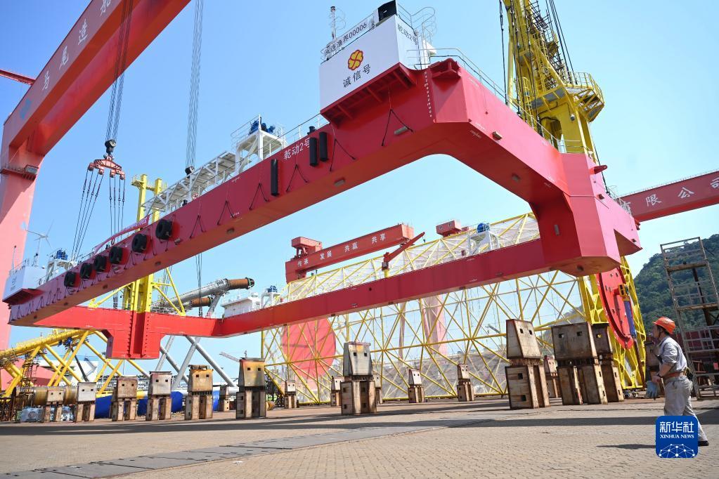 當日,“乾動(dòng)2號”深遠海養殖平臺下水儀式在位于福建福州市連江縣粗蘆島的馬尾造船股份有限公司舉行。