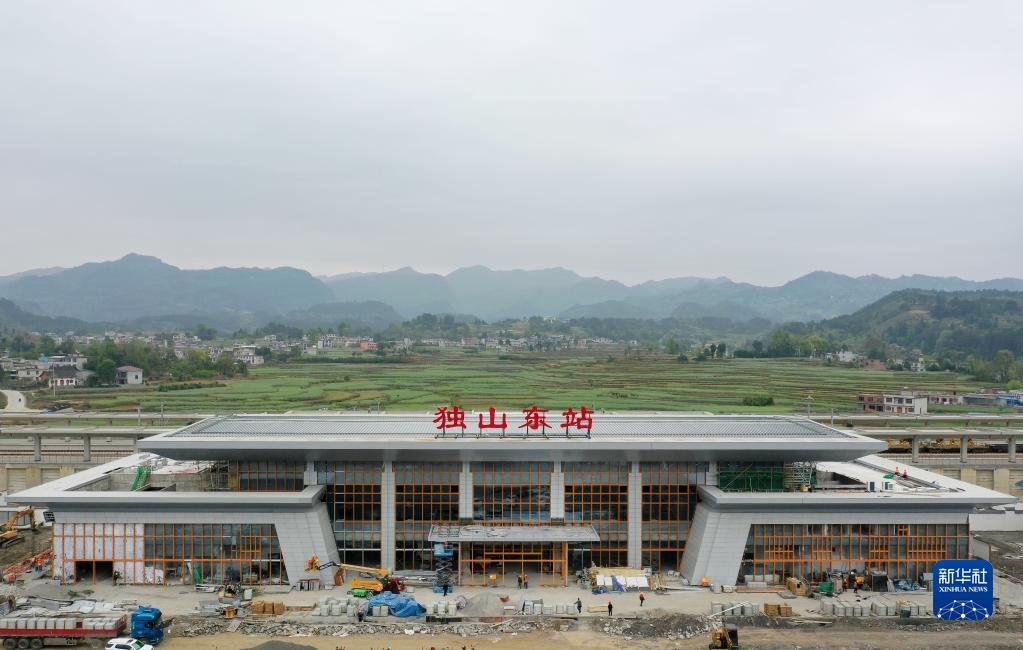 4月9日,獨山東站在緊張施工當中(無(wú)人機照片)。