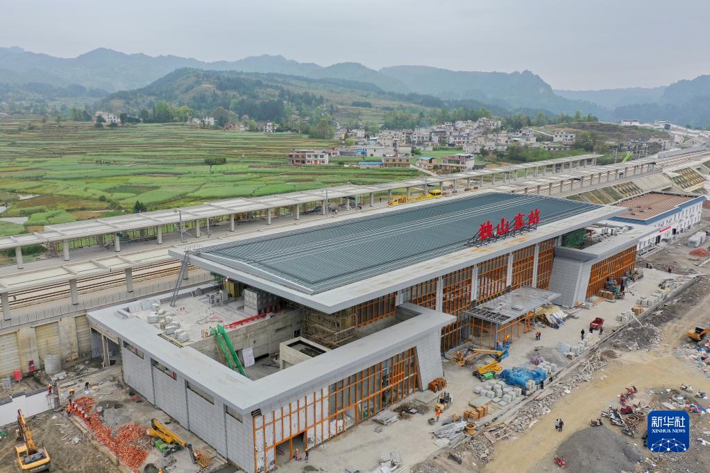 4月9日,獨山東站在緊張施工當中(無(wú)人機照片)。