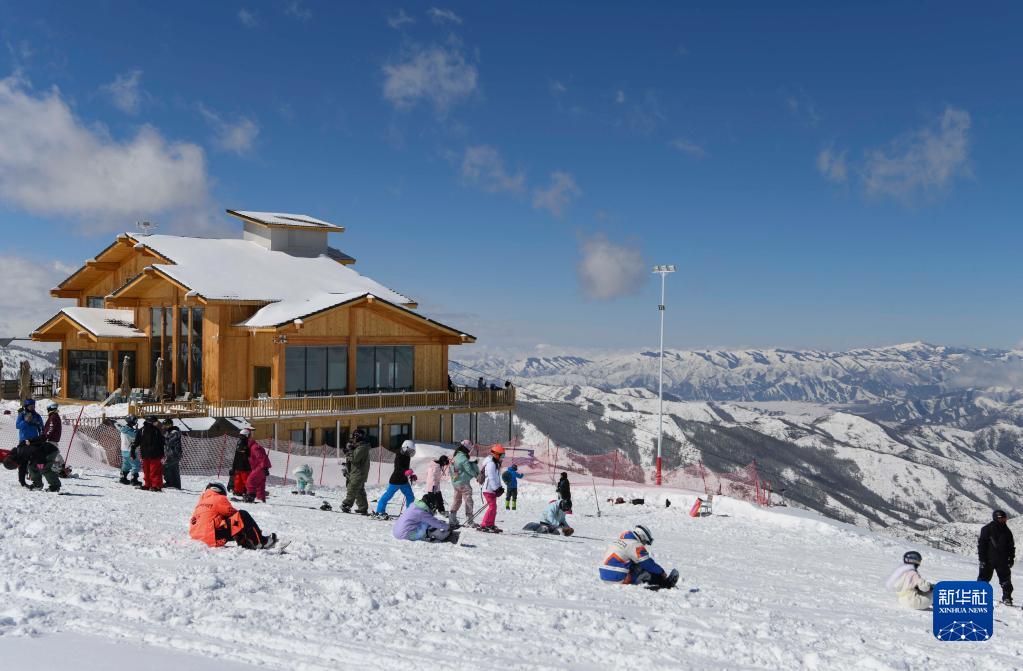 游客在新疆富蘊縣可可托海國際滑雪度假區滑雪游玩(4月9日攝)。